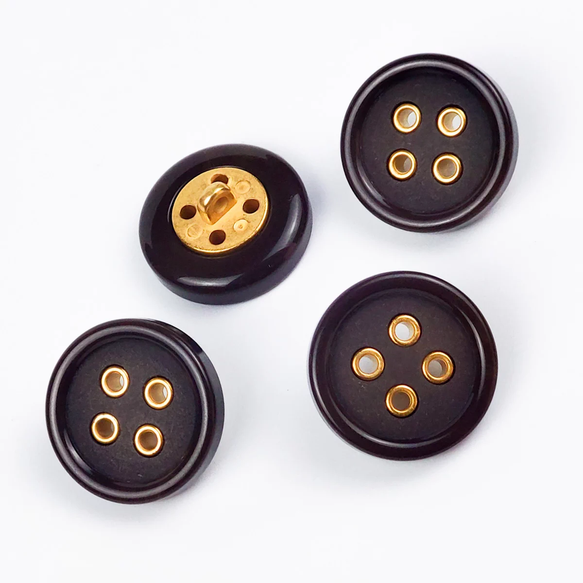 Пуговицы, Union Knopf, "Круглые, с выступом", на ножке, 4 отв., пластик, цвет коричневый, 23 мм.