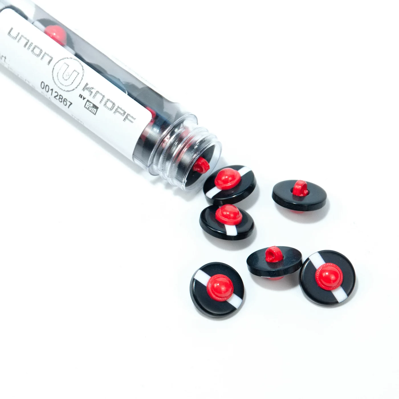 Пуговица Union Knopf, на ножке, пластик, цвет черно-синий/красный/белый, 14 мм