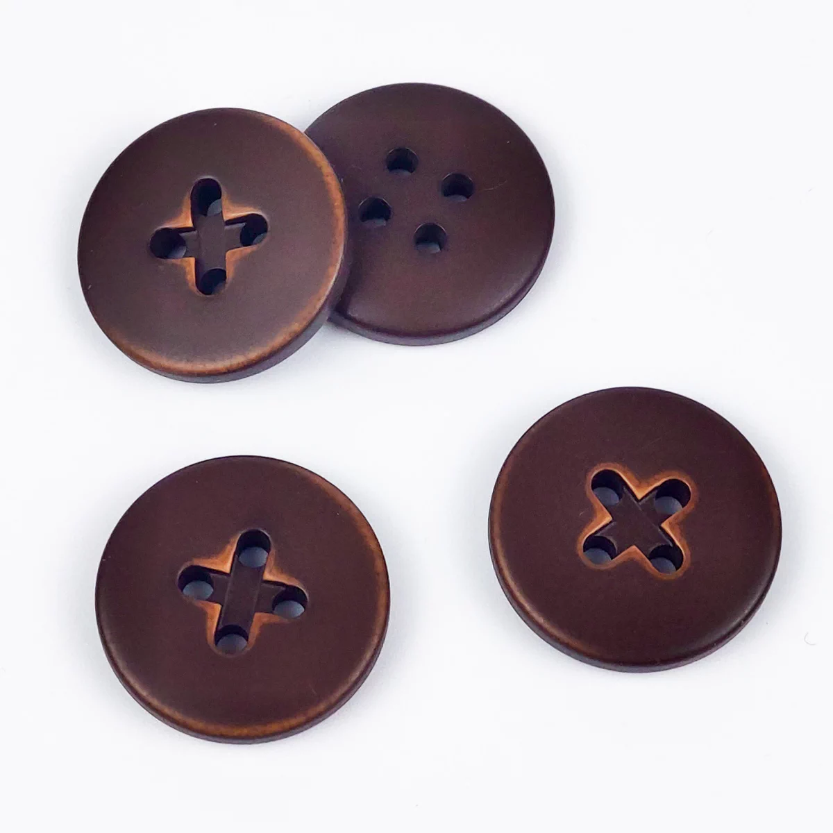 Пуговицы, Union Knopf, "Круглые, прорезь-крест", 4 отв., пластик, цвет коричневый, 23 мм.
