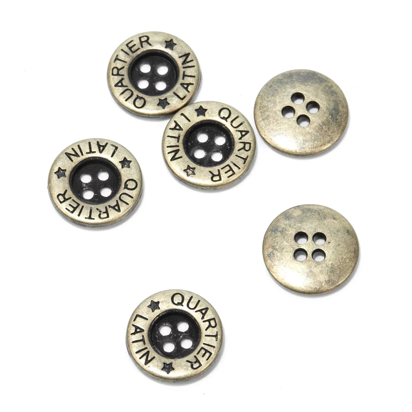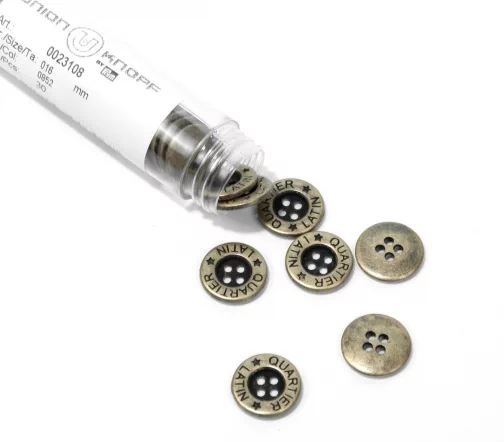 Пуговица Union Knopf "Quartier Latin", 4 отв., металл, цвет латунь, 16 мм