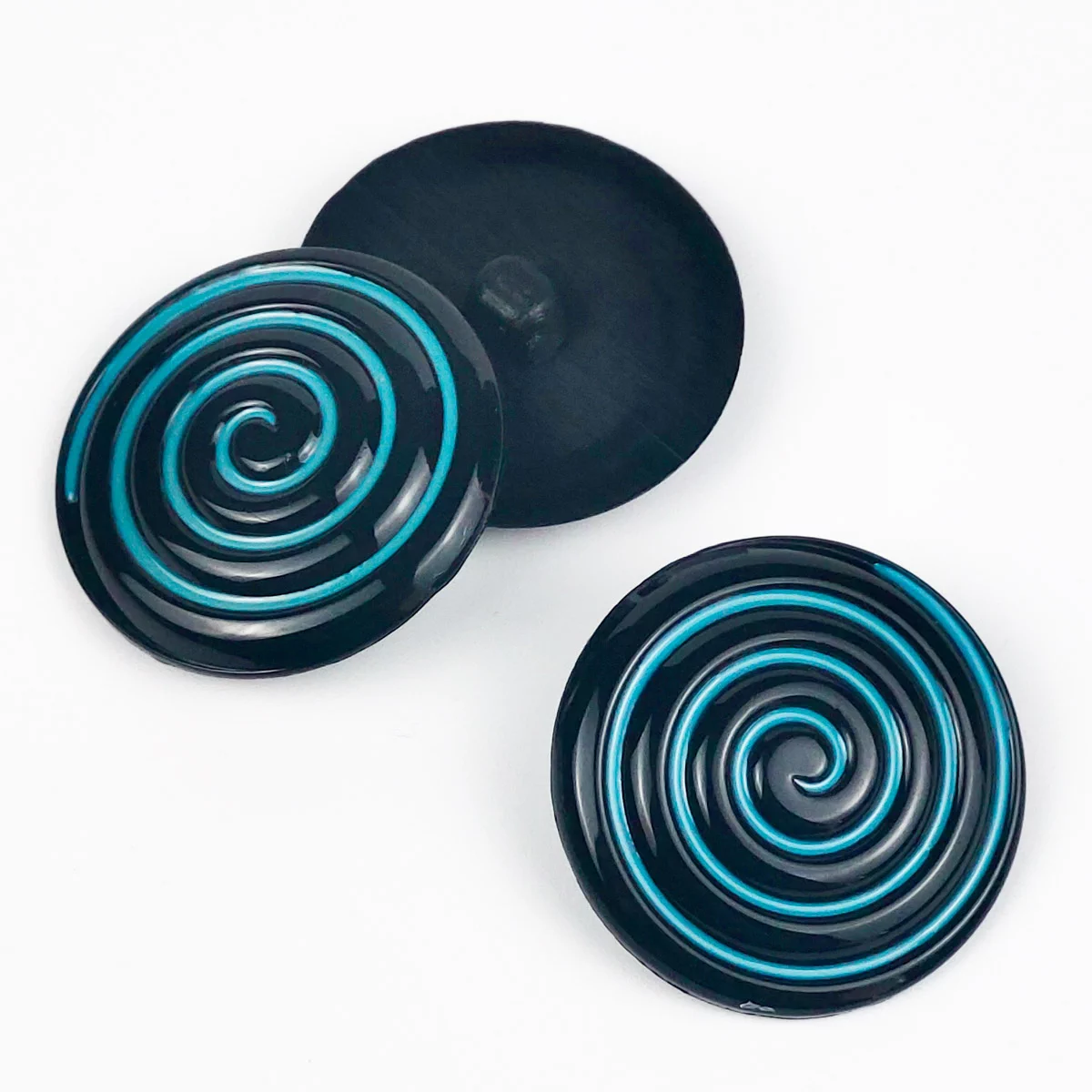 Пуговицы, Union Knopf, "Спираль, круглые", на ножке, пластик, цвет черно-голубой, 32 мм. Арт. 0048690 032 0070 612