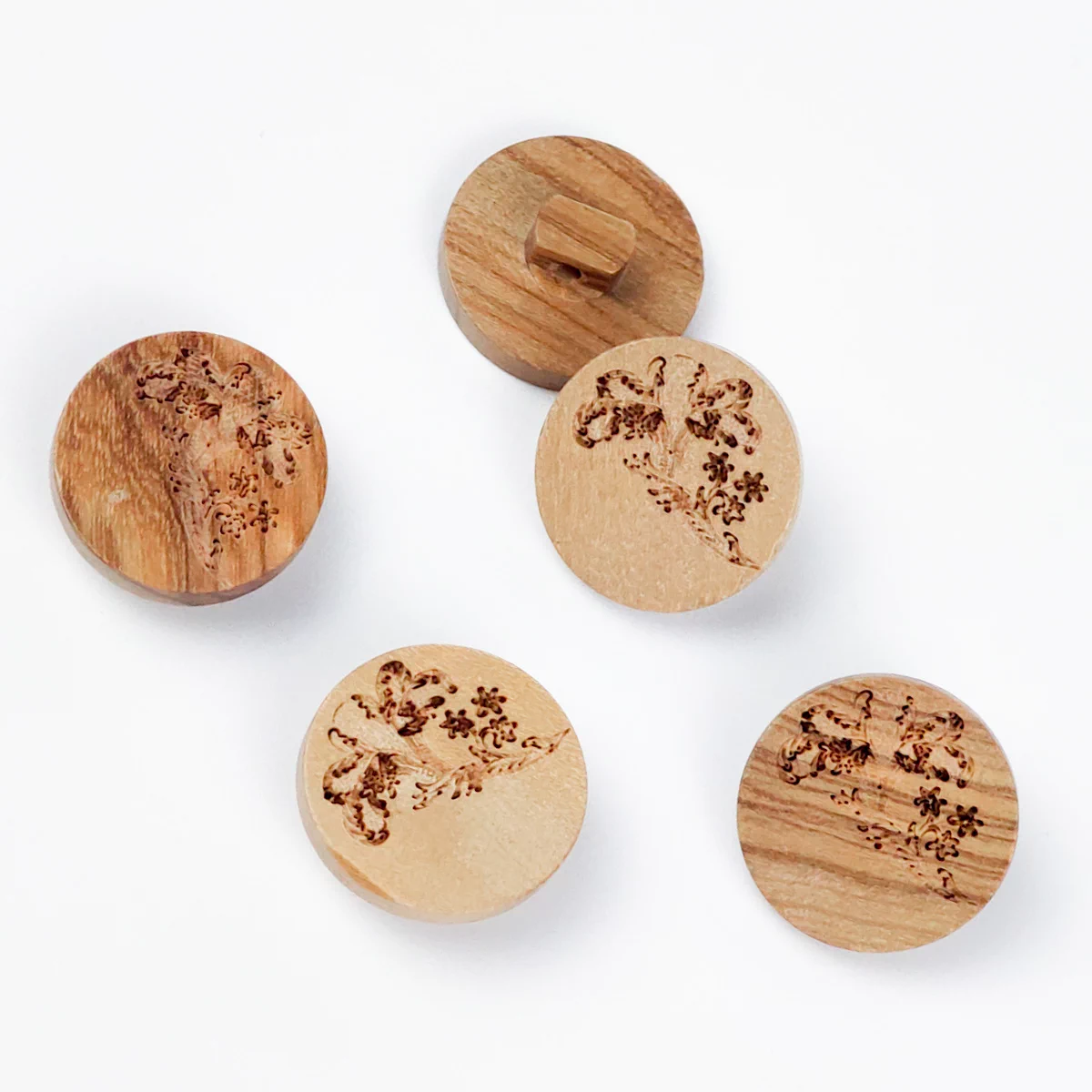 Пуговицы, Union Knopf, "Дерево с цвет. орнаментом", на ножке, натур. дерево, 18 мм.
