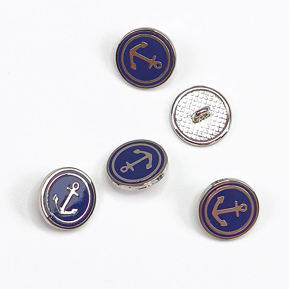 Пуговица Union Knopf "Якорь", на ножке, металл/пластик, цвет синий/серебро, 15 мм