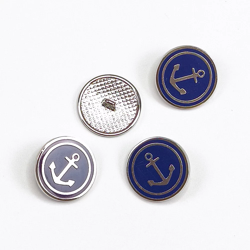 Пуговица Union Knopf "Якорь", на ножке, металл/пластик, цвет синий/серебро, 20 мм