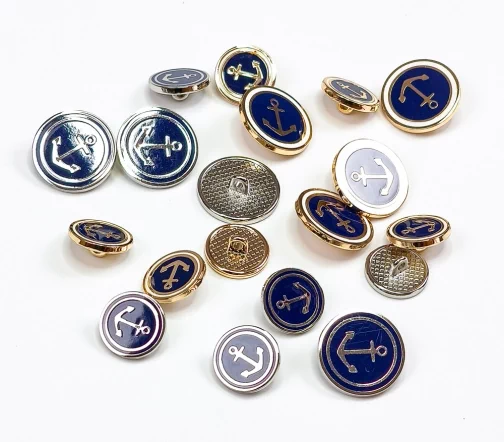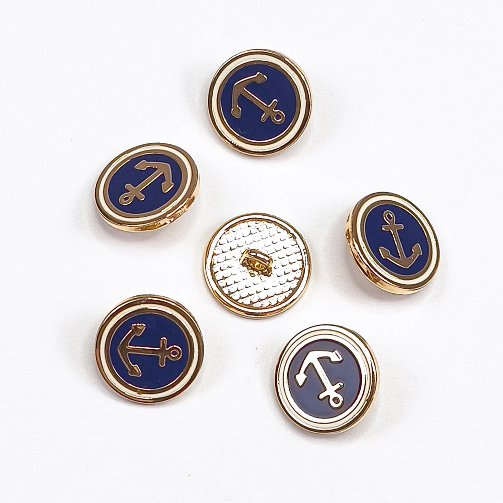 Пуговица Union Knopf "Якорь", на ножке, металл/пластик, цвет синий/золото, 15 мм