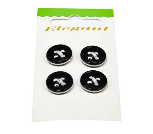 Пуговицы Disboton, 15 мм, 4 отв., пластик, 4 шт., цвет черный/белый