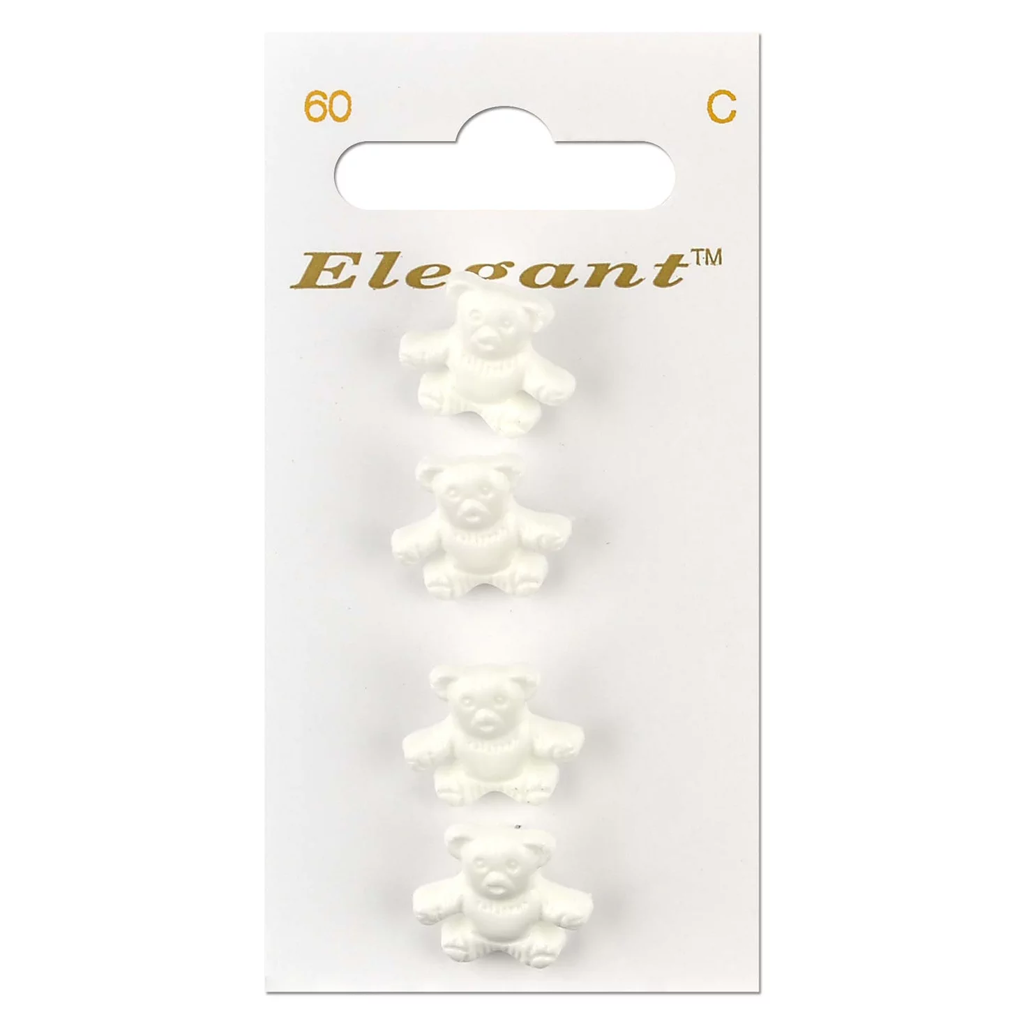 Пуговицы Elegant "Мишки белые", арт. 060 F, на ножке, 17х15 мм, пластик, 4 шт.