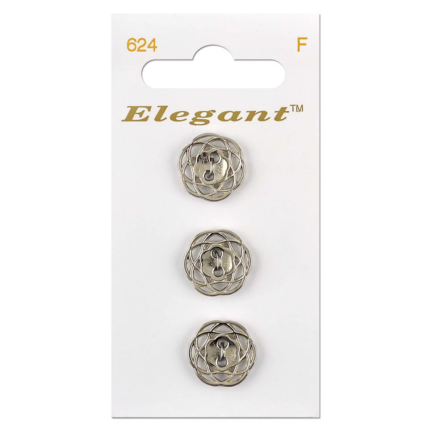 Пуговицы, Elegant, арт. 624 F, 2 отв., 16 мм, металл, 3 шт.