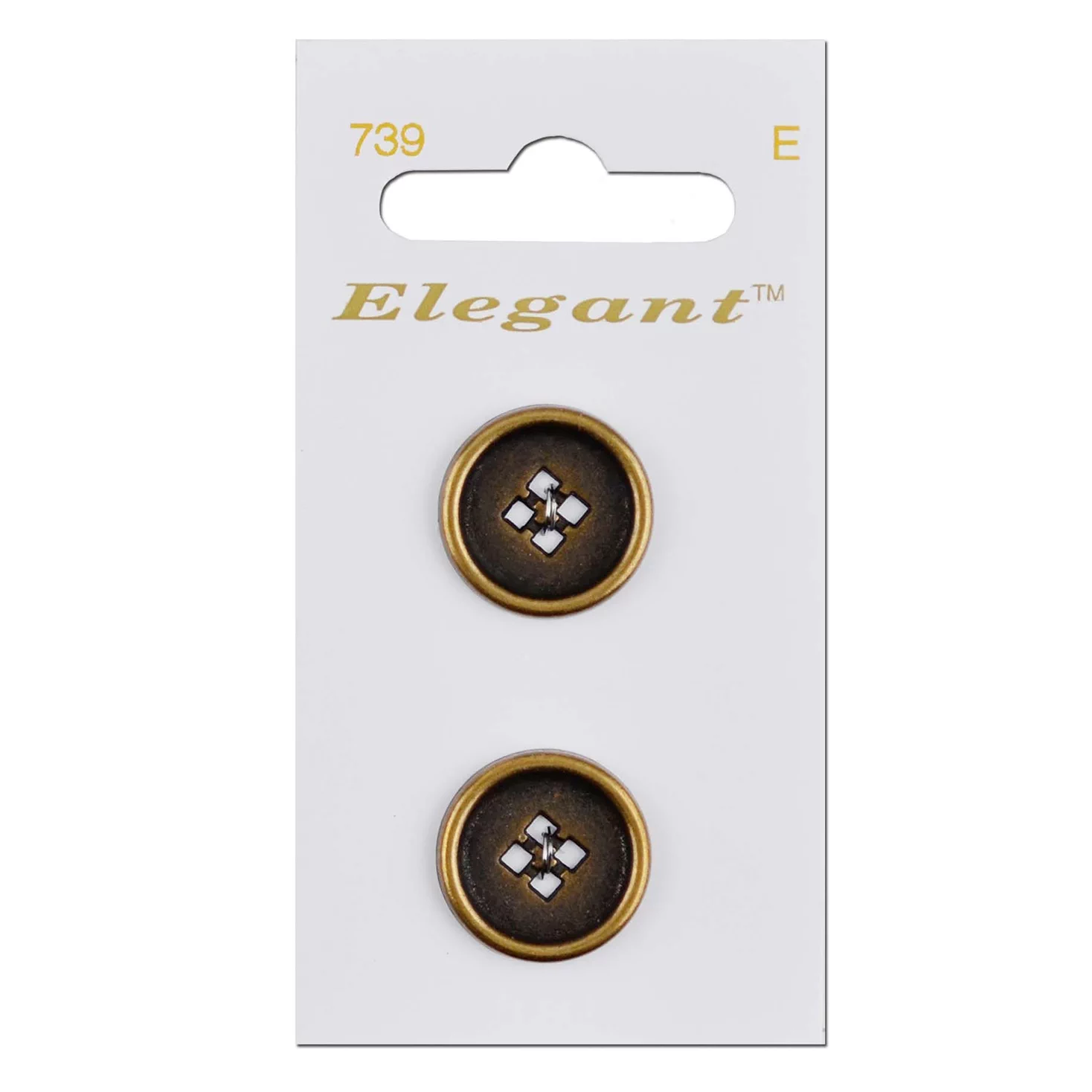 Пуговицы, Elegant, арт. 739 G, 4 отв., 19 мм, металл, 2 шт.