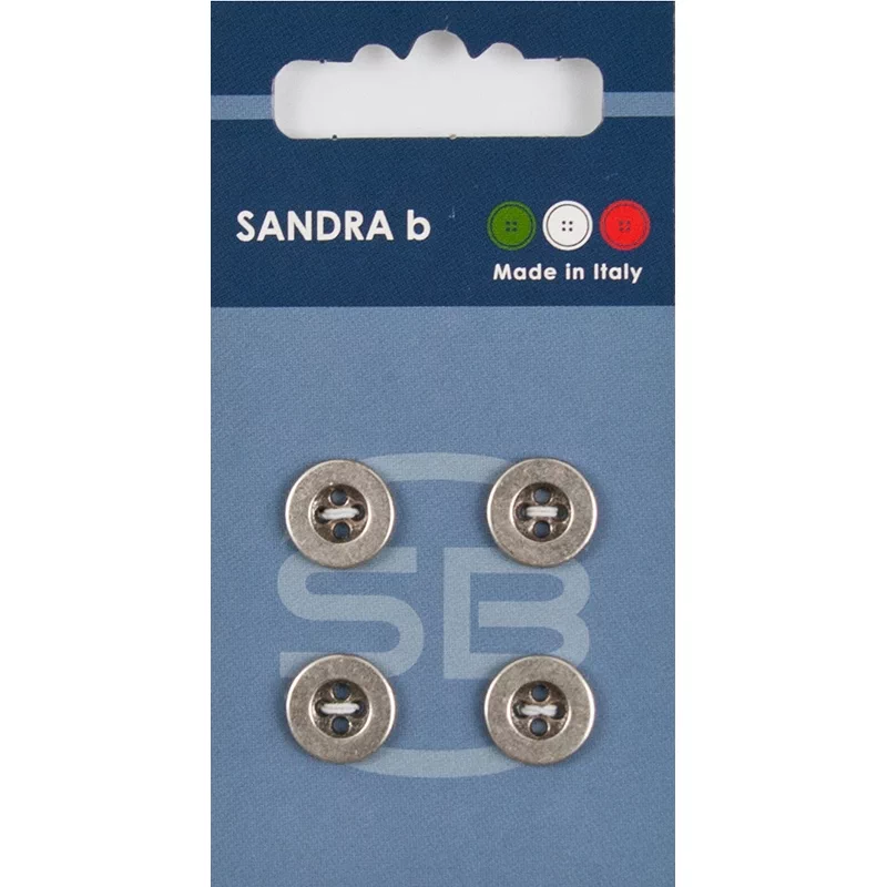 Пуговицы Sandra, 11 мм, 4 отв., металл, 4 шт., серебро, CARD193