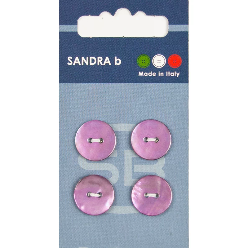 Пуговицы Sandra, 15 мм, 2 отв., нат.перламутр, 4 шт., лиловый, CARD065