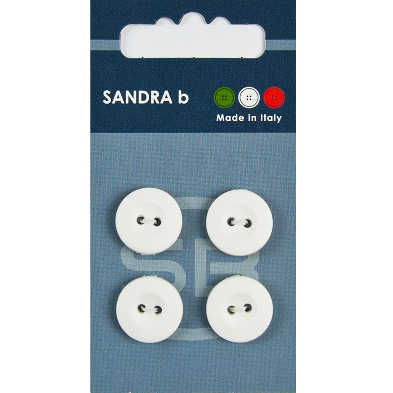 Пуговицы Sandra, 15 мм, 2 отв., пластик, 4 шт., белый, CARD014