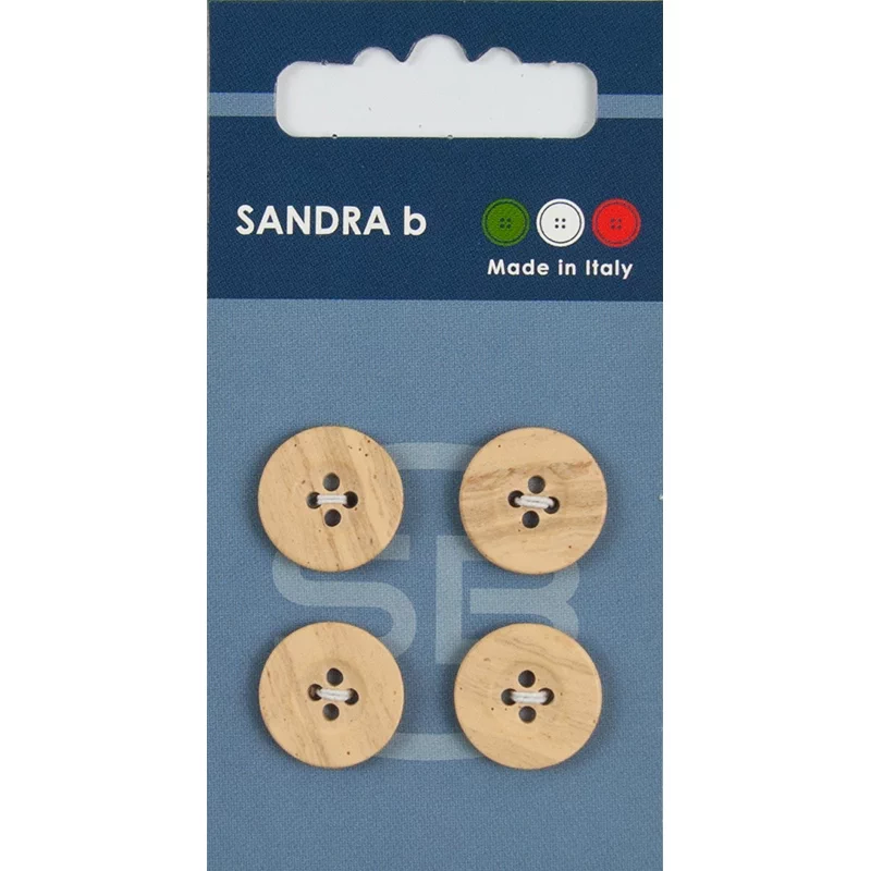 Пуговицы Sandra, 15 мм, 4 отв., пластик, 4 шт., деревянный, CARD236