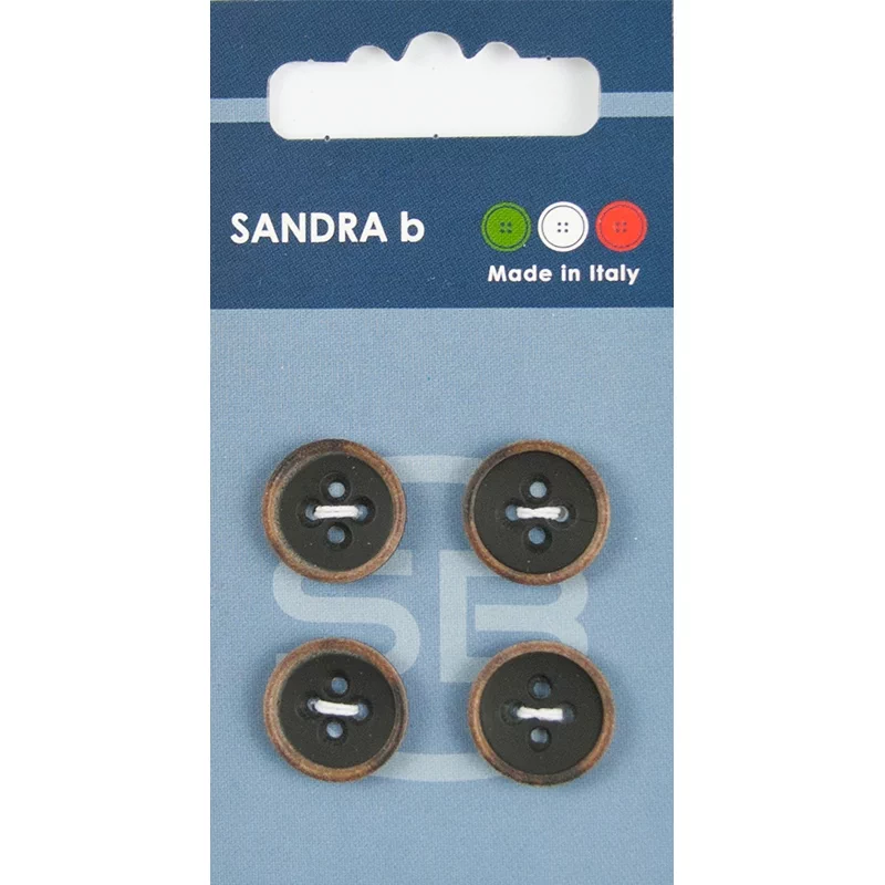 Пуговицы Sandra, 15 мм, 4 отв., пластик, 4 шт., цвет черный/коричневый, CARD181