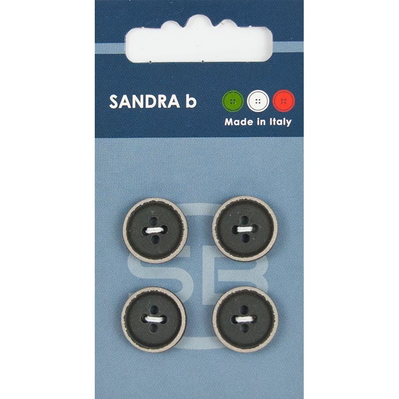Пуговицы Sandra, 15 мм, 4 отв., пластик, 4 шт., цвет черный/серый, CARD189