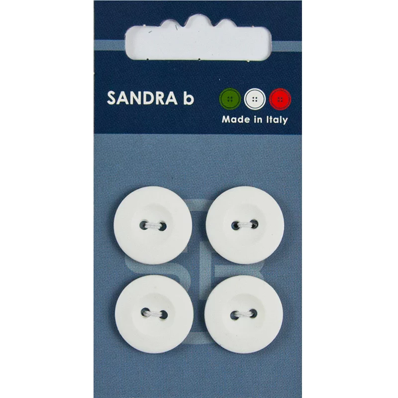 Пуговицы Sandra, 18 мм, 2 отв., пластик, 4 шт., белый, CARD015