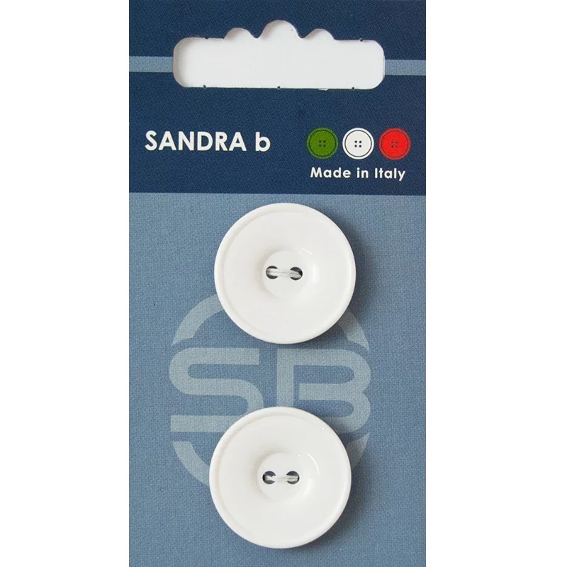 Пуговицы Sandra, 23 мм, 2 отв., пластик, 2 шт., белый, CARD021