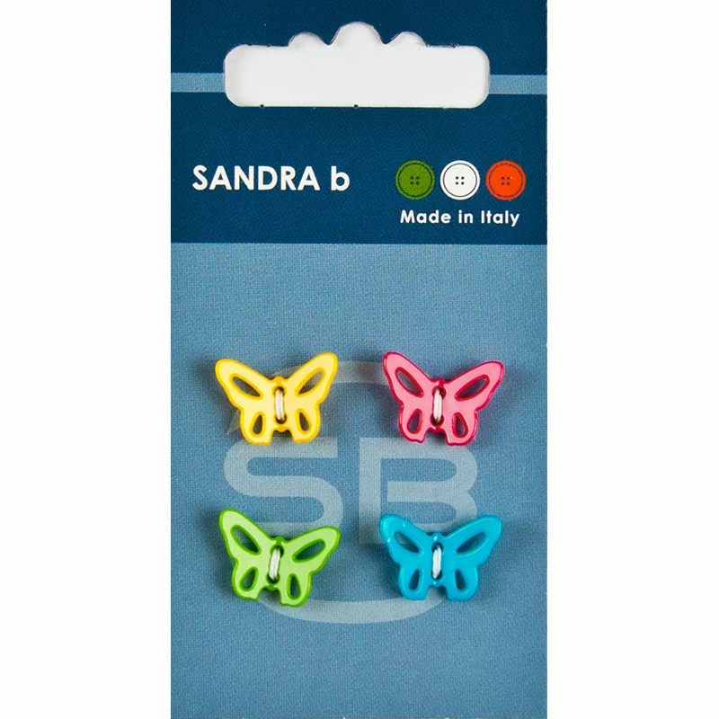 Пуговицы Sandra "Бабочки", на ножке, 15 мм, пластик, 4 шт., разноцветные, CARD143