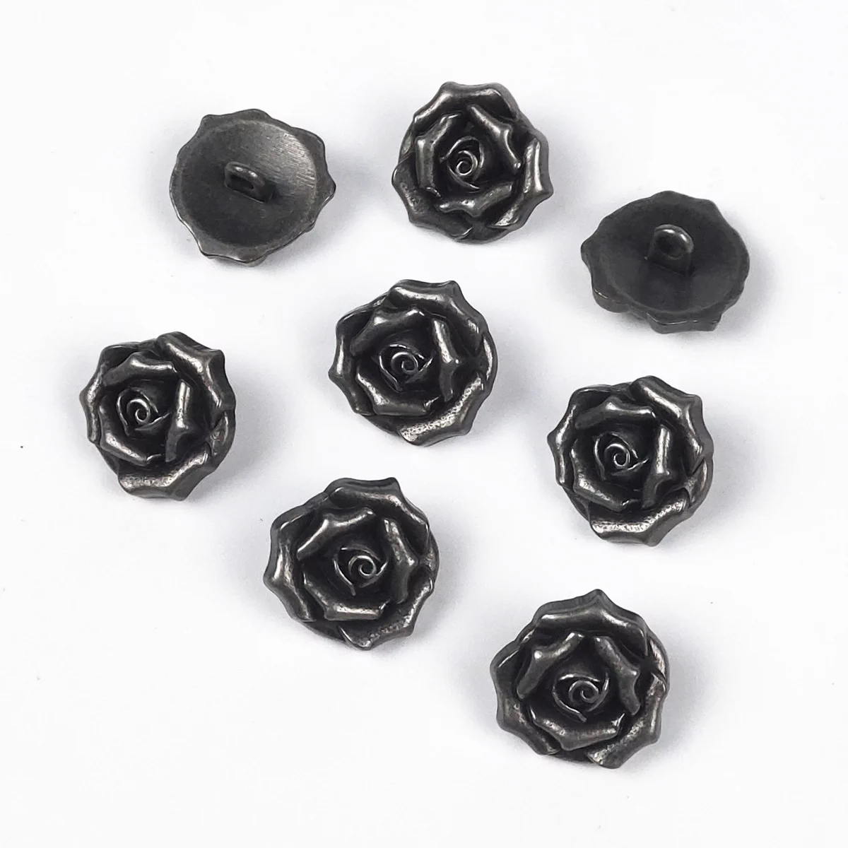 Пуговицы, Union Knopf, "Благородная роза", на ножке, металл, цвет черненный серебро, 18 мм.
