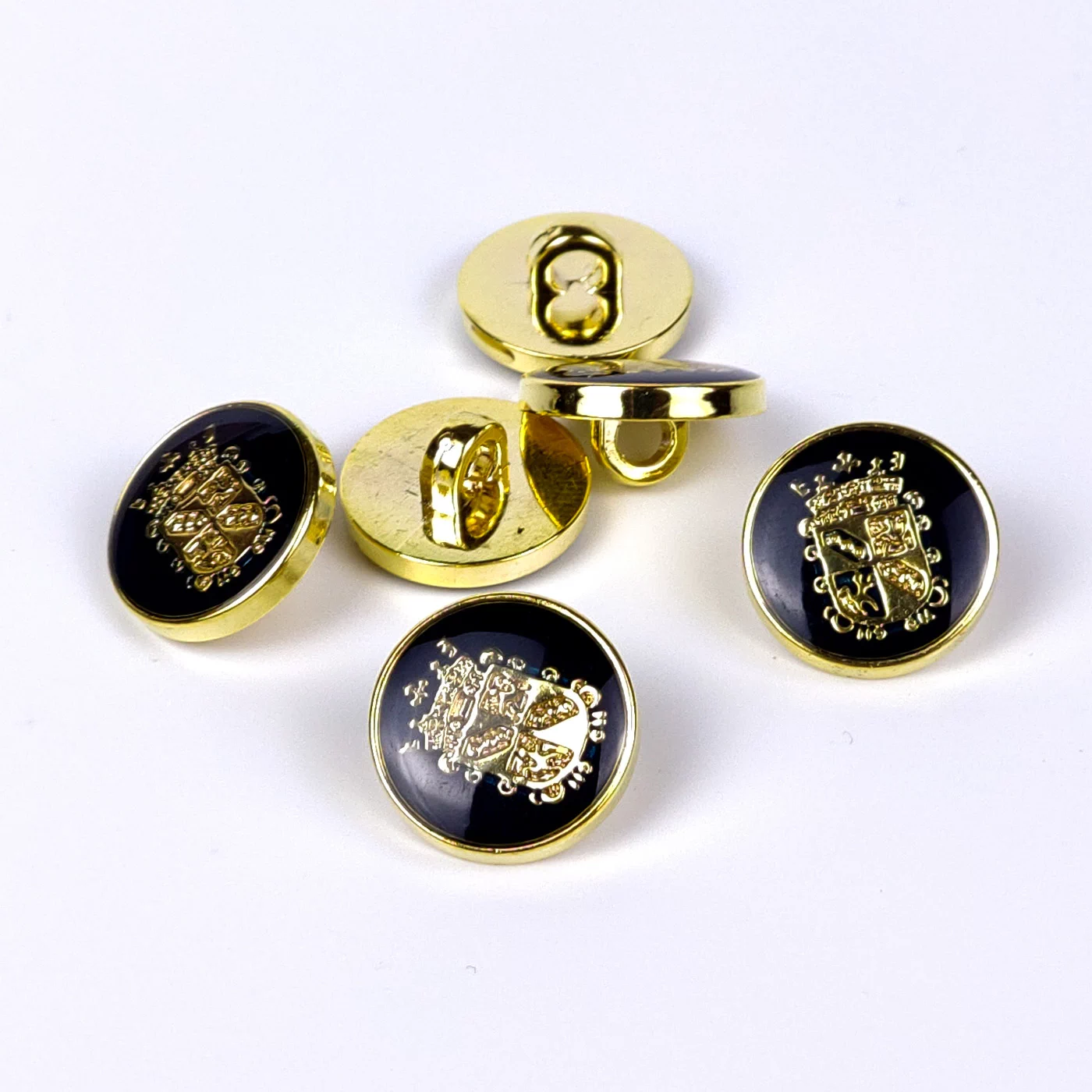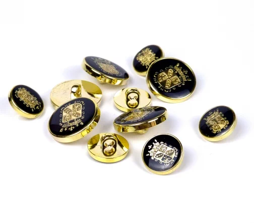 Клубная плательно-костюмная пуговица на ножке с эмалью черно-синего цвета с золотом.