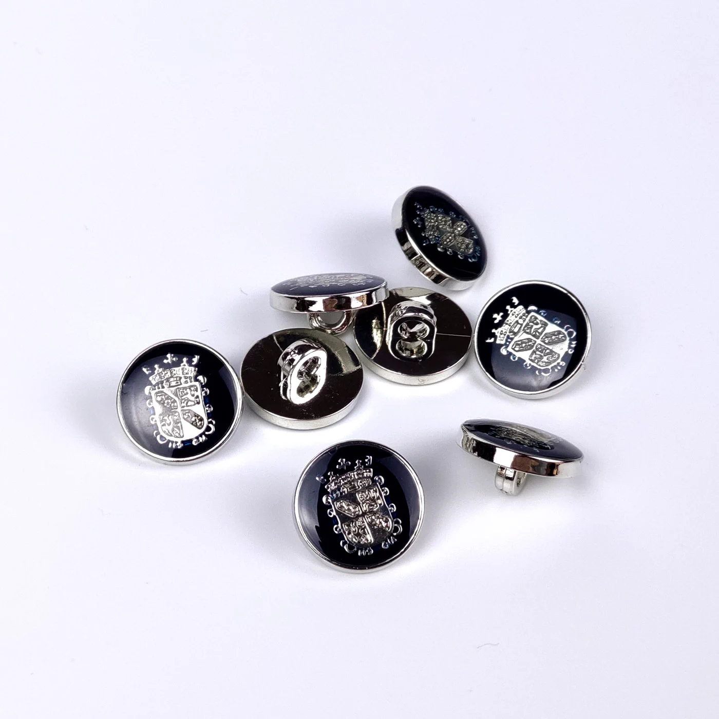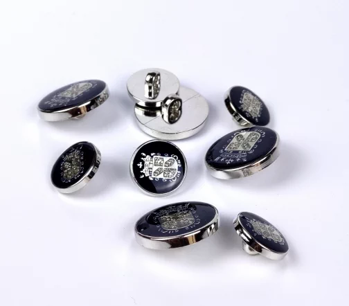 Клубная плательно-костюмная пуговица на ножке с эмалью темно-синего цвета с серебром.