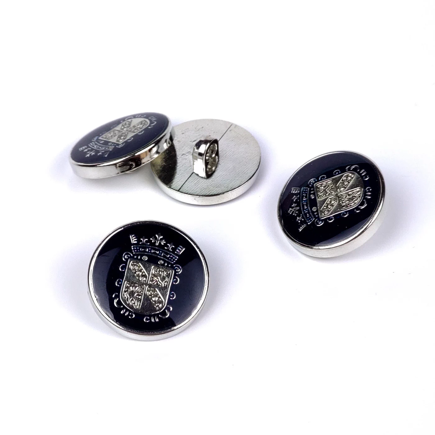 Клубная плательно-костюмная пуговица на ножке с эмалью темно-синего цвета с серебром.