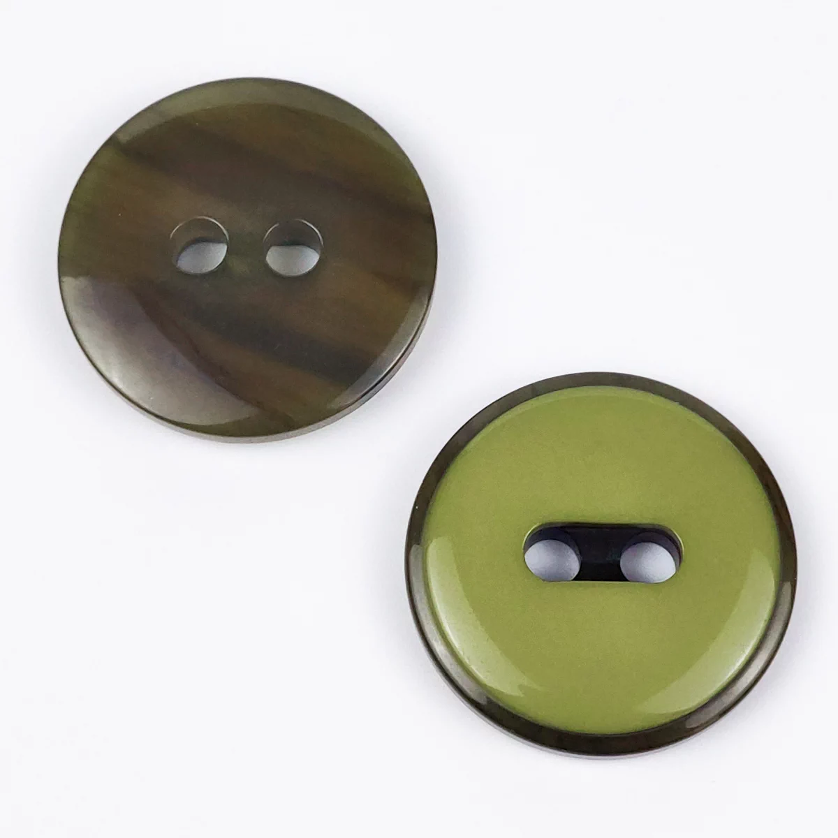 Пуговицы, Union Knopf, "Круглые, прорезь-полоса", глянец, 2 отв., пластик, цвет оливковый, 34 мм.