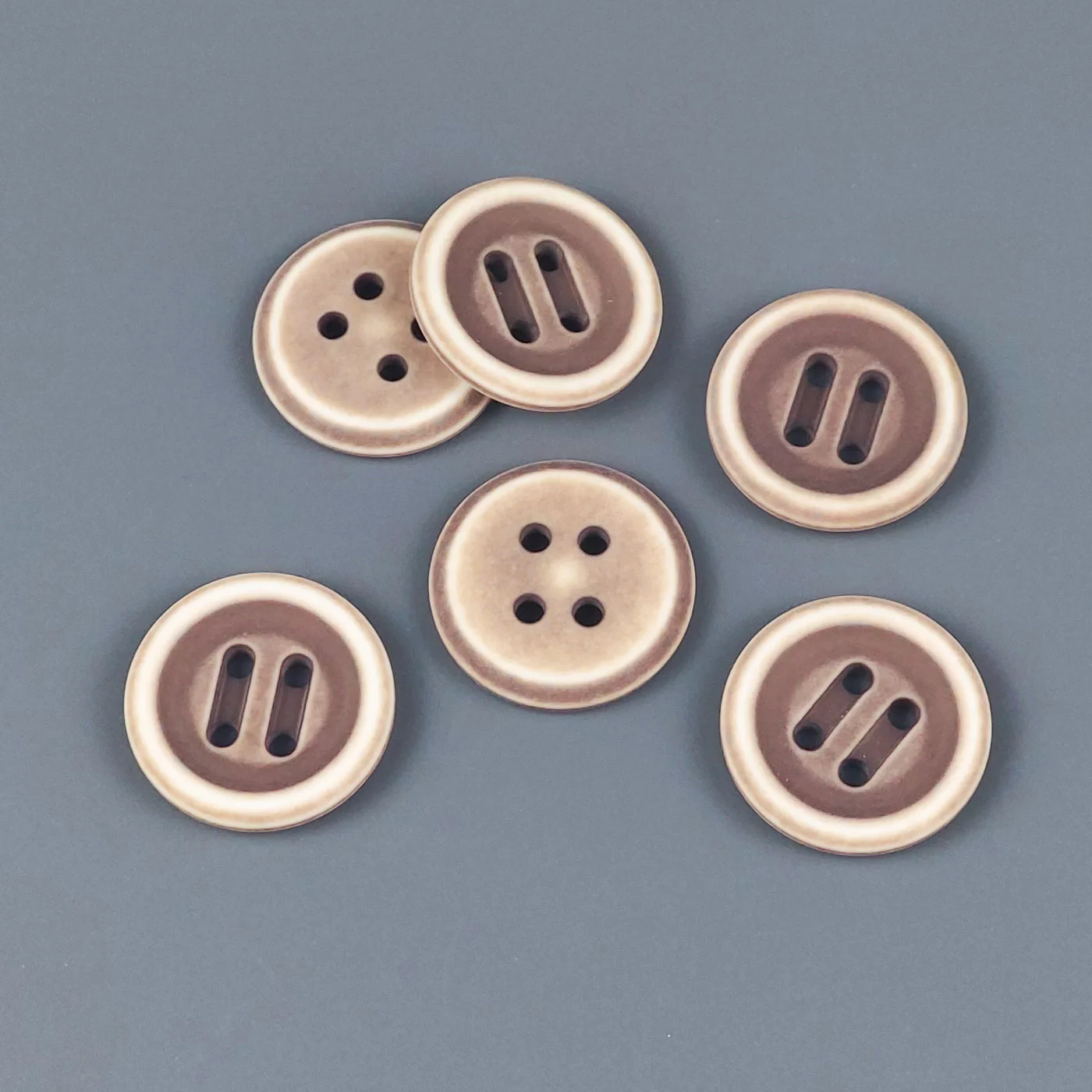 Пуговицы, Union Knopf, круглые, с белым ободком, 4 отв., пластик, цвет коричневый, 20 мм.