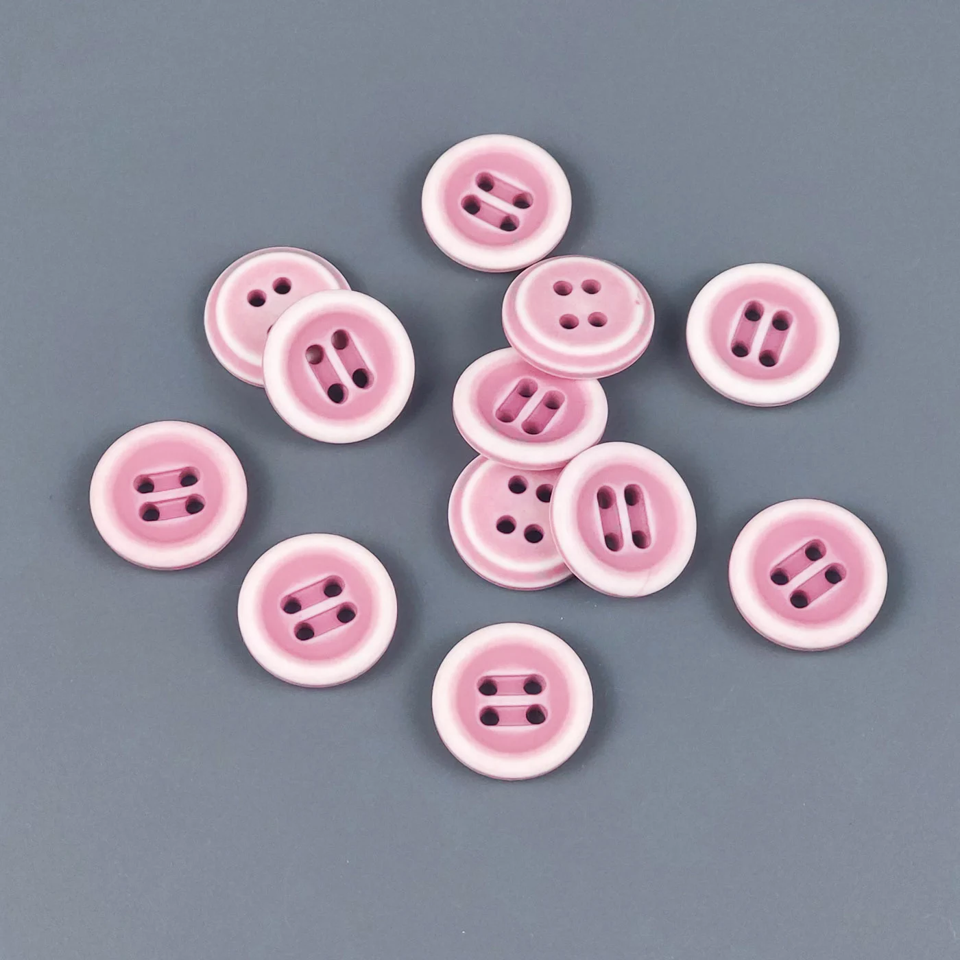 Пуговицы, Union Knopf, круглые, с белым ободком, 4 отв., пластик, цвет розовый, 15 мм.