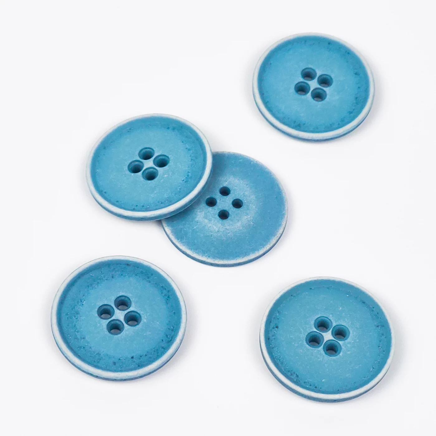 Пуговицы, Union Knopf, "Круглые с белой каймой", 4 отв., пластик, цвет голубой, 28 мм