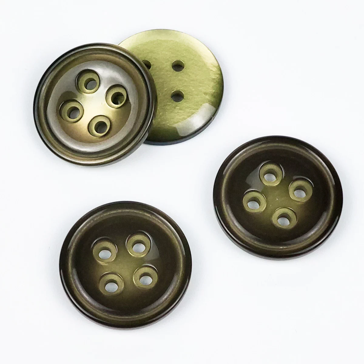 Пуговицы, Union Knopf, "Круглые, с отливом, цв. середина", 4 отв., пластик, цвет зеленый, 23 мм.