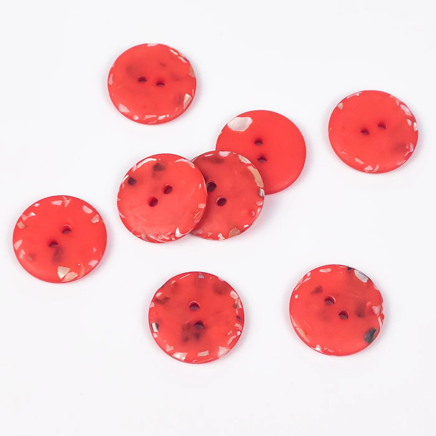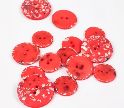 Пуговицы, Union Knopf, "Круглые с перламутром", 2 отв., пластик/раковина, цвет красный, 20 мм