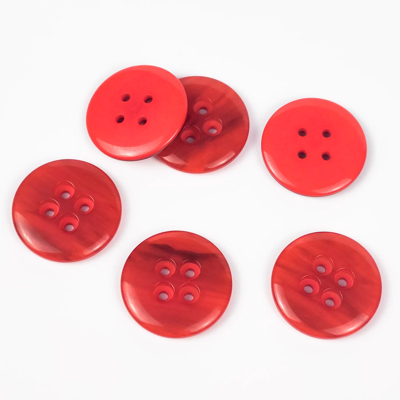 Пуговицы, Union Knopf, "Круглые с перламутром", 4 отв., пластик, цвет красный, 28 мм.