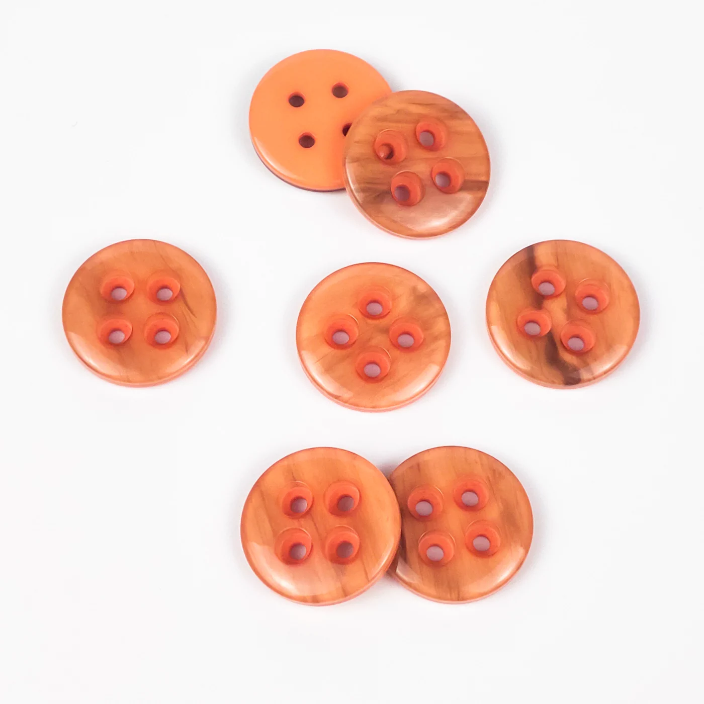 Пуговицы, Union Knopf, "Круглые с перламутром", 4 отв., пластик, цвет оранжевый, 18 мм.