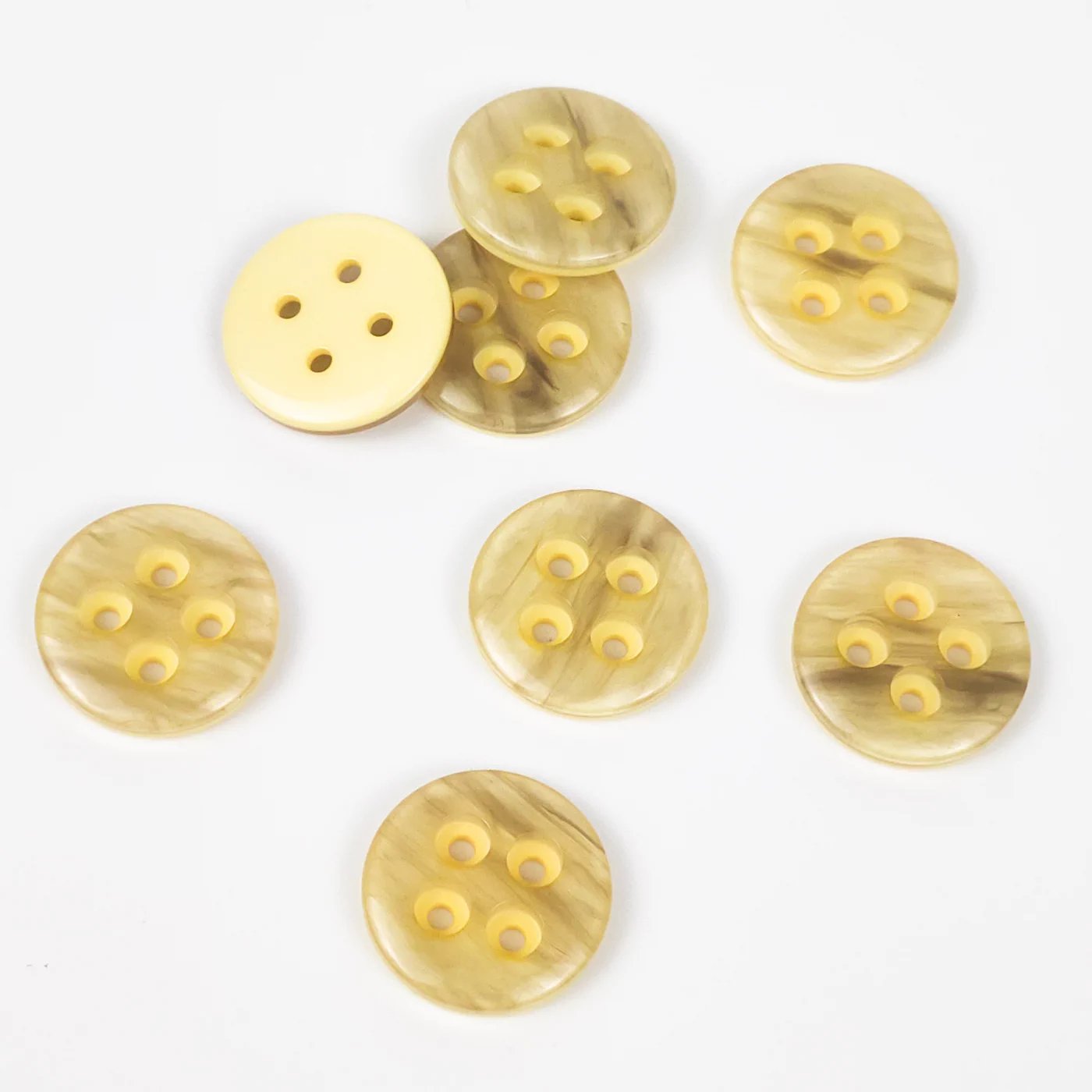 Пуговицы, Union Knopf, "Круглые с перламутром", 4 отв., пластик, цвет серо-желтый, 18 мм.