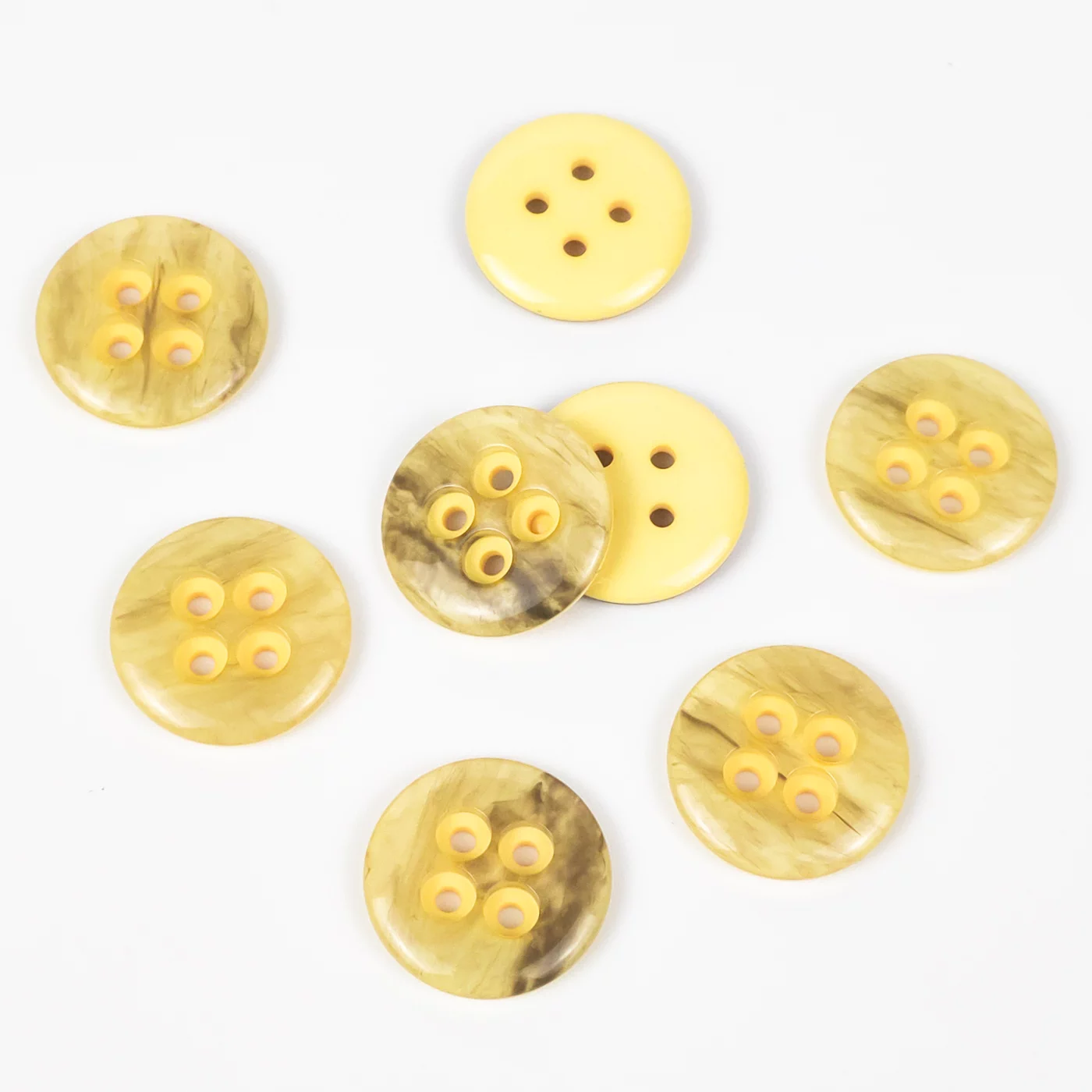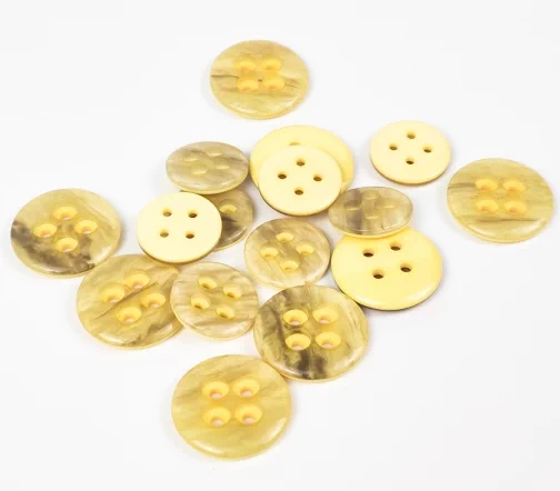 Пуговицы, Union Knopf, "Круглые с перламутром", 4 отв., пластик, цвет серо-желтый, 23 мм.