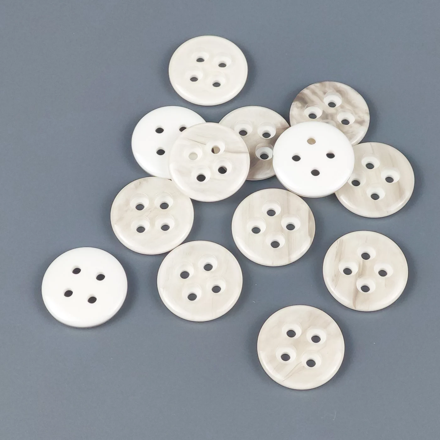 Пуговицы, Union Knopf, "Круглые с перламутром", 4 отв., пластик, цвет серо-молочный, 18 мм.