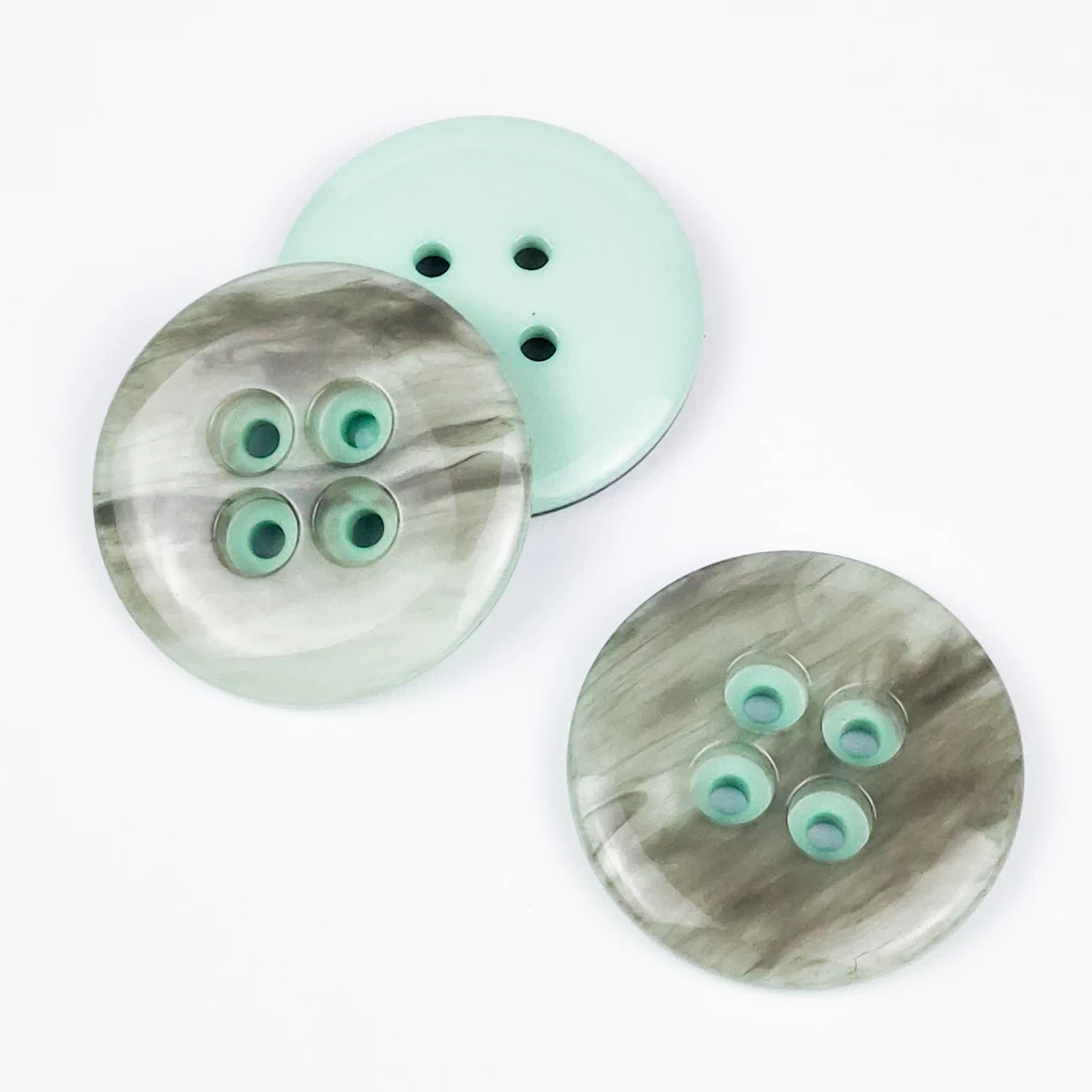 Пуговицы, Union Knopf, "Круглые с перламутром", 4 отв., пластик, цвет серо-салатовый, 28 мм.