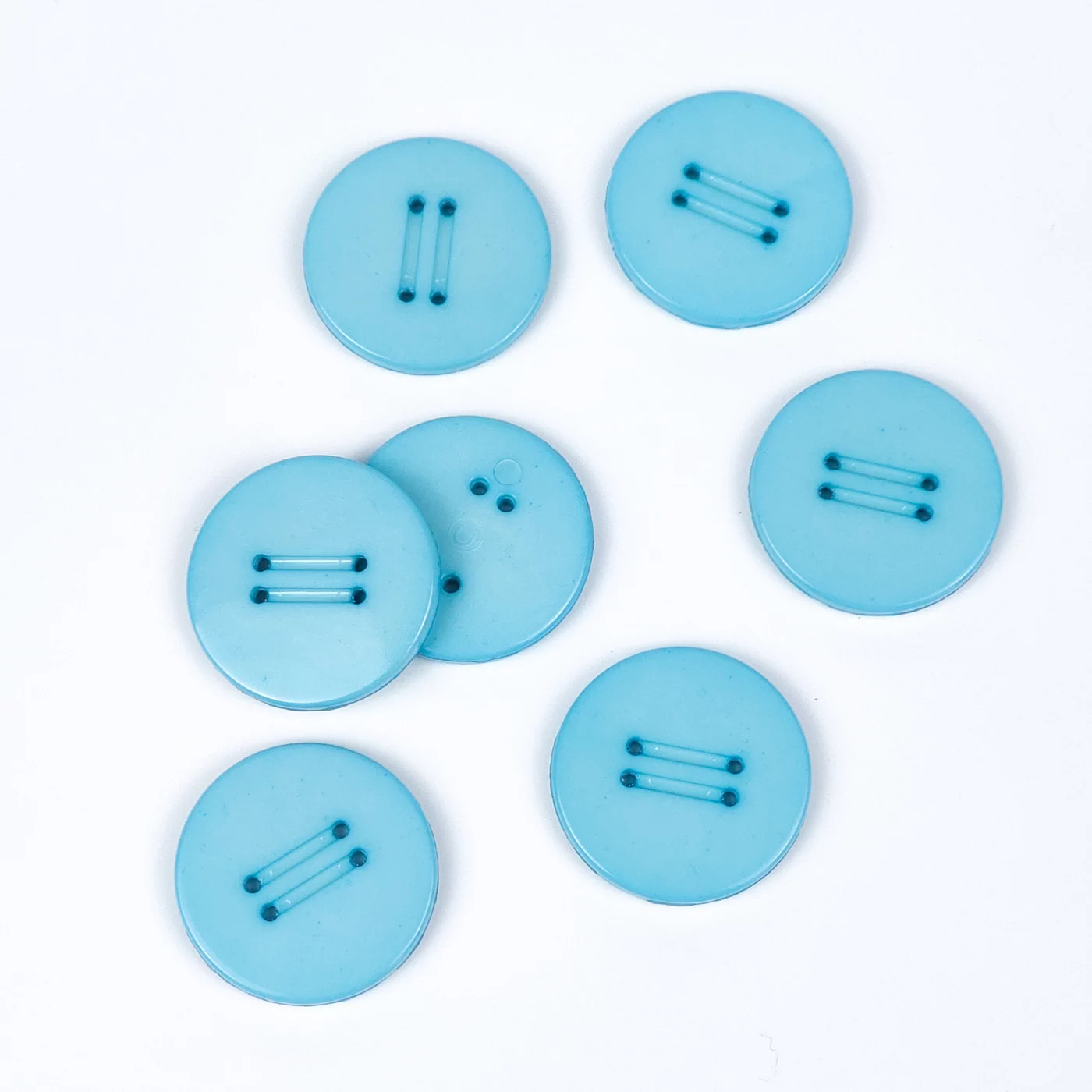 Пуговицы, Union Knopf, "Круглые, с прорезями", 4 отв., пластик, цвет голубой, 23 мм.
