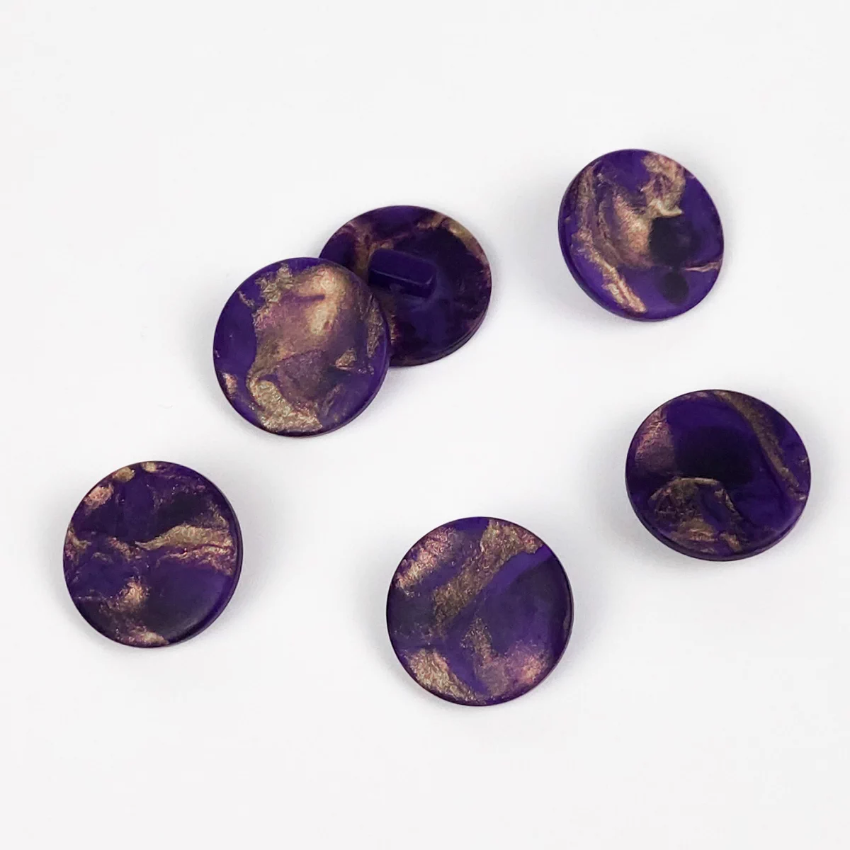 Пуговицы, Union Knopf, "Круглые с золотой пылью", на ножке, пластик, цвет фиолетовый, 18 мм.