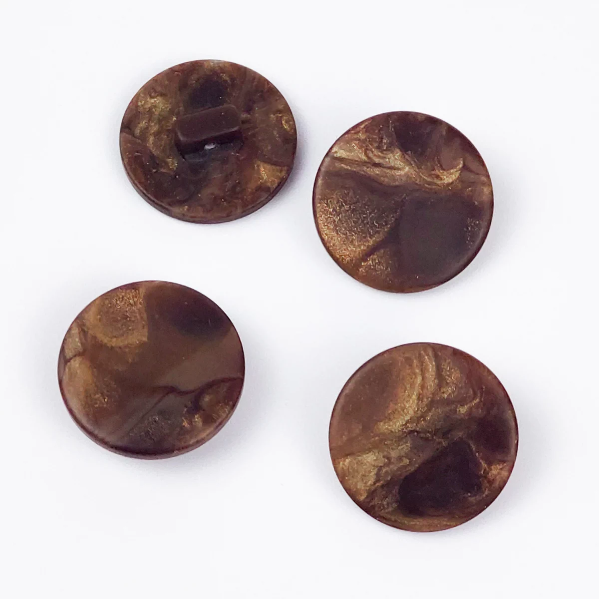 Пуговицы, Union Knopf, "Круглые с золотой пылью", на ножке, пластик, цвет коричневый, 18 мм.