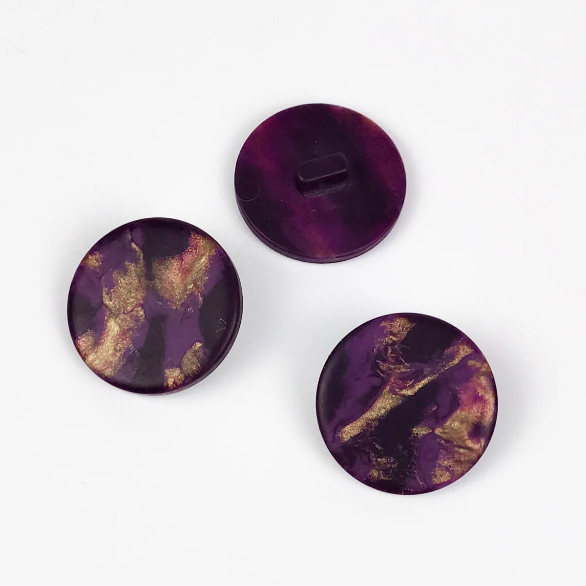 Пуговицы, Union Knopf, "Круглые с золотой пылью", на ножке, пластик, цвет сиреневый, 22 мм.