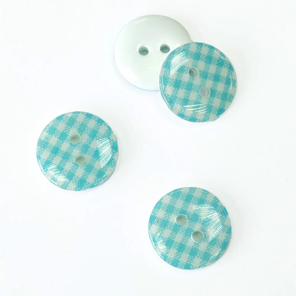 Пуговицы, Union Knopf, "Круглые в клеточку", пластик, цвет бирюзовый, 18 мм.