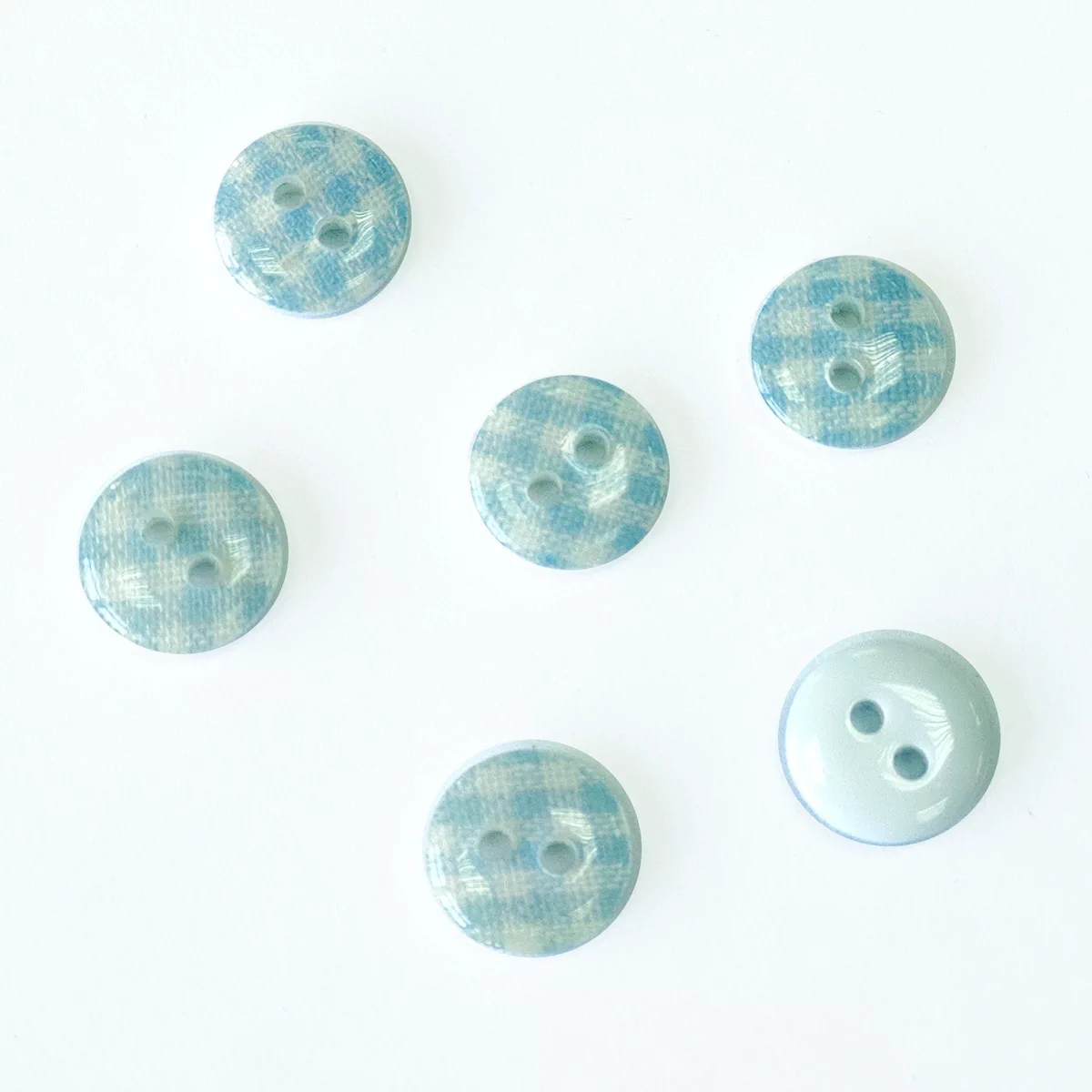Пуговицы, Union Knopf, "Круглые в клеточку", пластик, цвет голубой, 11 мм.