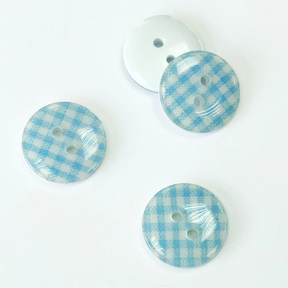 Пуговицы, Union Knopf, "Круглые в клеточку", пластик, цвет голубой, 18 мм.