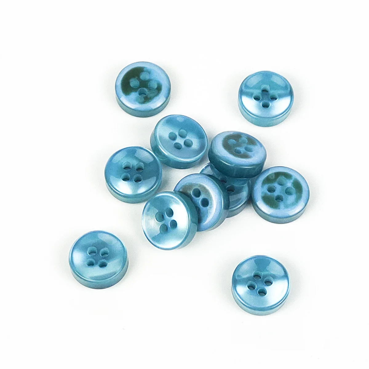 Пуговицы, Union Knopf, круглые, выпуклые, с переливом, 4 отв., пластик, цвет бирюзовый, 11 мм.