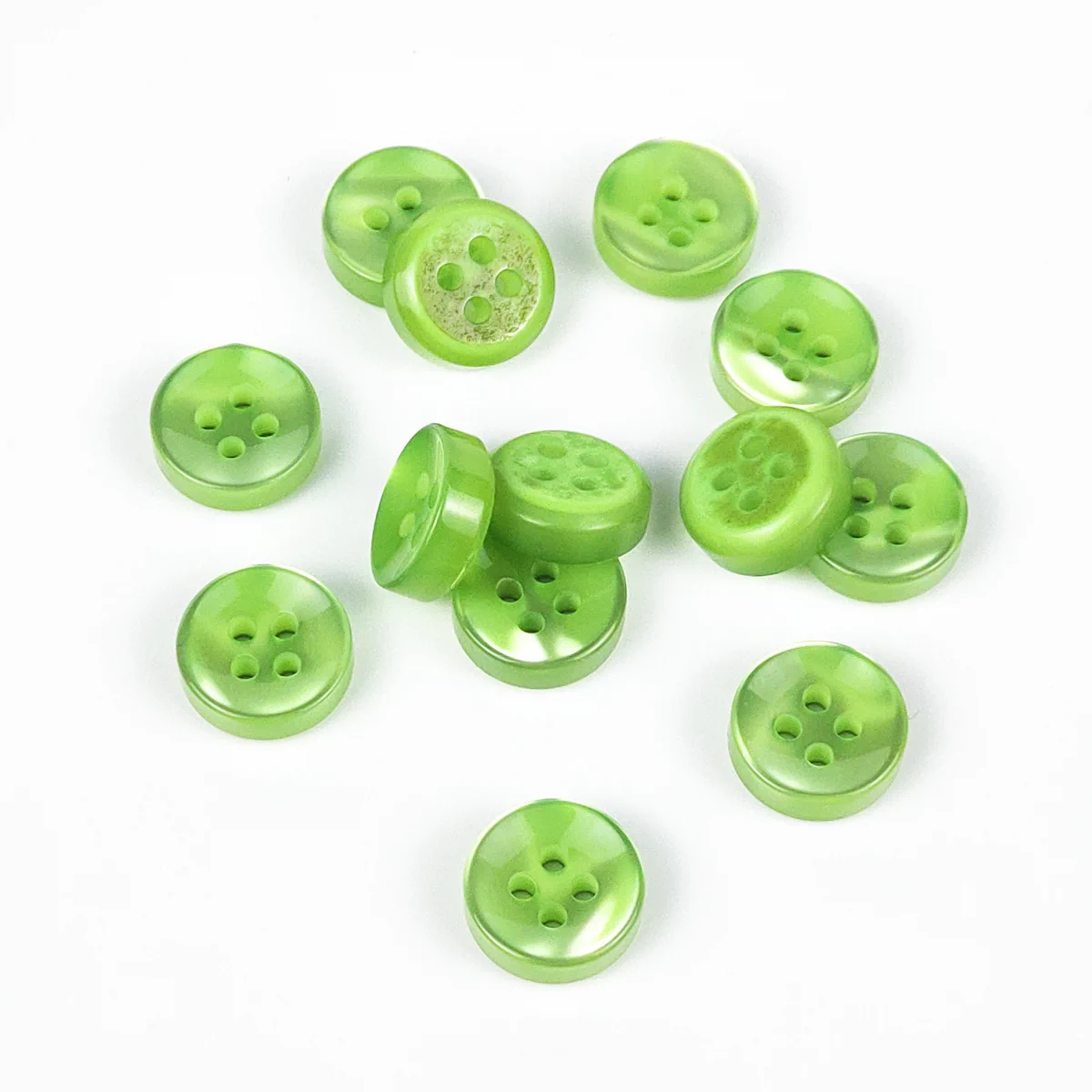 Пуговицы, Union Knopf, круглые, выпуклые, с переливом, 4 отв., пластик, цвет светло-зеленый, 11 мм.