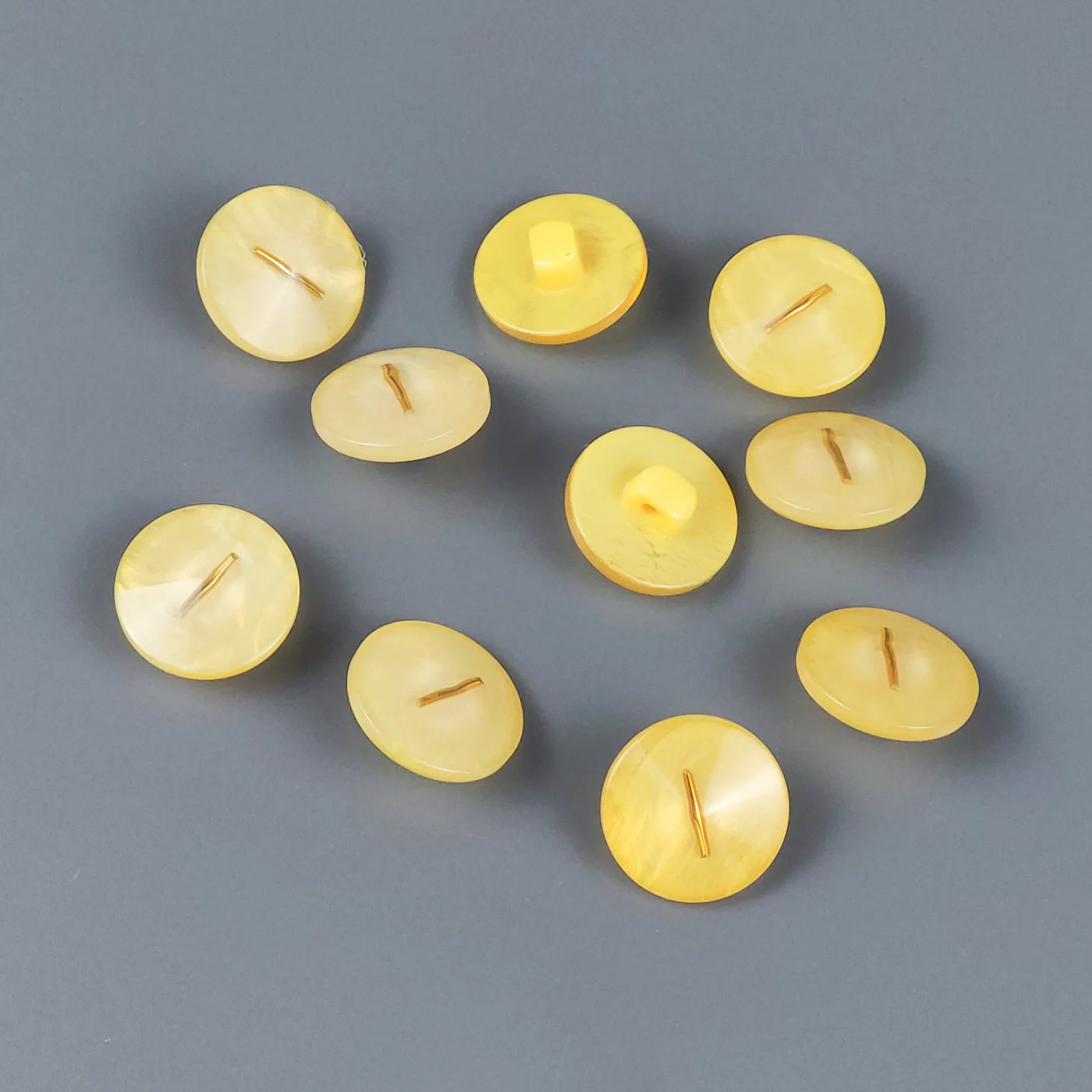 Пуговицы, Union Knopf, "Круглые, вытянутые, с переливом", на ножке, пластик, цвет желтый, 15 мм.