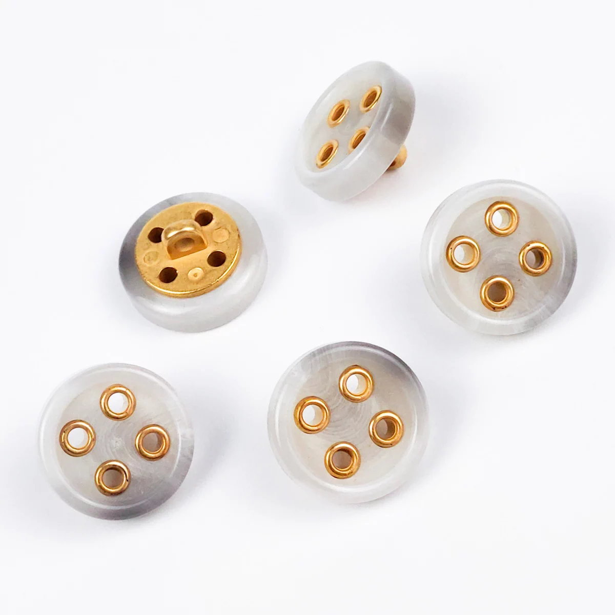 Пуговицы, Union Knopf, "Круглые, с кантом", на ножке, 4 отв., пластик, цвет серый, 18 мм.