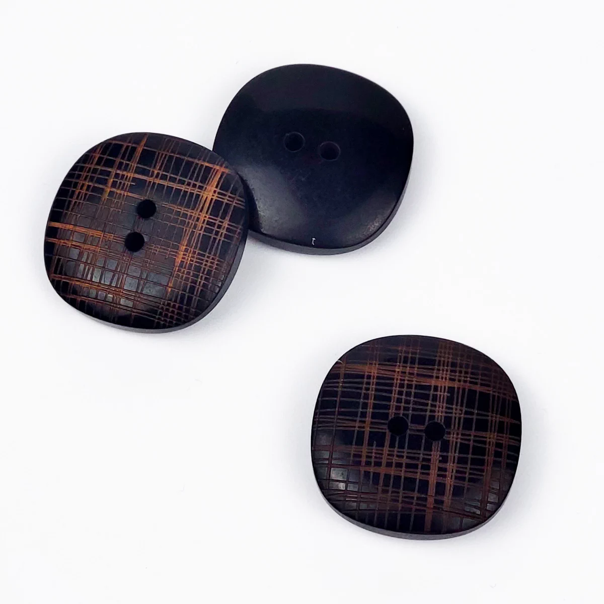 Пуговицы, Union Knopf, "Насечка сеткой", 4 отв., пластик, цвет черный/коричневый, 25 мм. Арт. 48657 25 22.